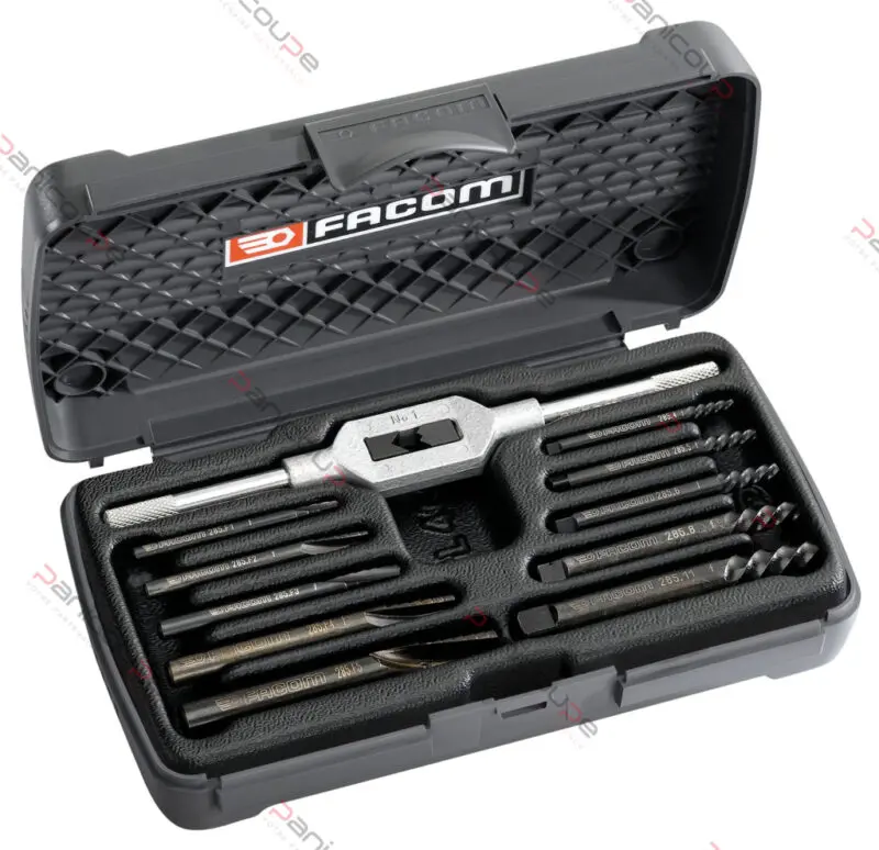 Jeu de 5 extracteurs et 5 forets pour Ø de 3 à 18 mm. Ces extracteurs hélicoïdaux permettent l’extraction après perçage d’un avant trou à l’aide des forets. Livré avec tourne à gauche