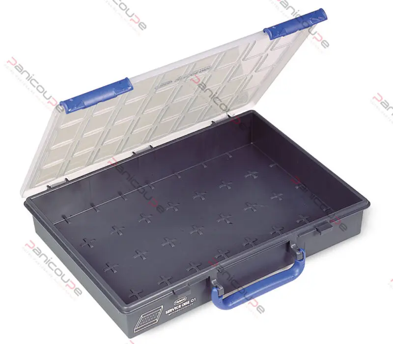 Couleur anthracite, couvercle transparent muni de 3 charnières et de 2 fermetures à glissières. Poignée robuste.